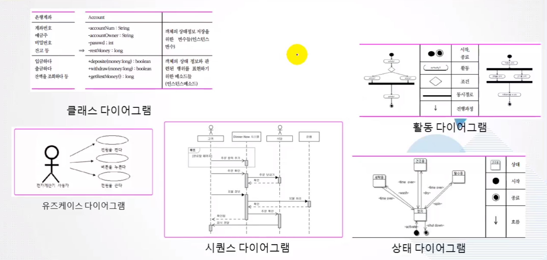 > UML : OMG 지정, 사용자와 개발자의 원활한 소통을 위한 표준화된 객체지향 모델링 언어
