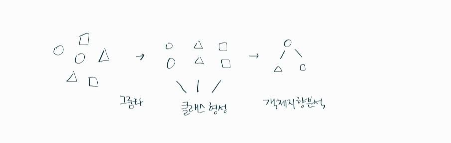 - 클래스 : 속성, 관계 도식화, 상태정보 / 객체 : 객체간의 관계