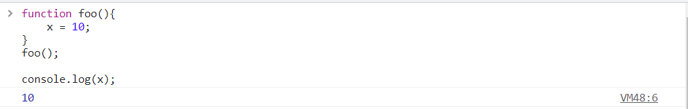 JS엔진은 변수 x가 선언된 위치를 찾기위해 스코프 체인을 통해 검색(foo함수 스코프 -> 전역 스코프)