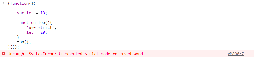 let = 20; //SyntaxError: Unexpected strict mode reserved word
