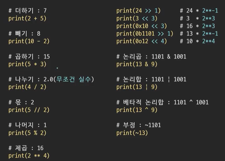 1) 산술 연산자 : 일반적인 연산자+파이썬 특유의 연산자, 결과가 무엇으로 나오는지가 중요