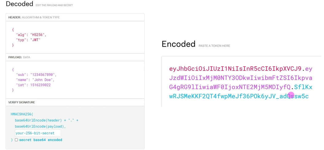 - Signature : 헤더에 정의된 알고리즘으로 인코딩된 헤더와 페이로드를 합친값, 비밀키를 기반으로 생성된 서명값