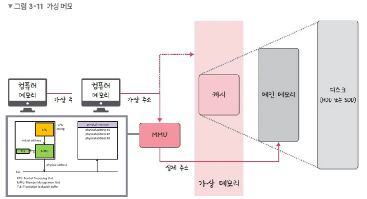 *MMU : 메모리관리장치로 가상 주소를 실제 주소로 변환시키는 역할