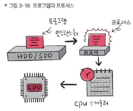 ex. '구글크롬 프로그램(chrome.exe)'과 같은 실행파일을 더블클릭하면 구글 크롬 '프로세스'가 시작됨