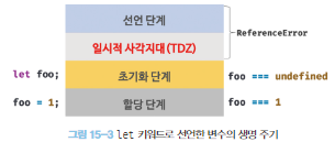 15.1.3 변수 호이스팅 : var 키워드로 선언시 변수 호이스팅에 의해 변수 선언문이 스코프의 선두에 있는 것처럼 동작, 단 할당문 이전에 변수 참조시 undefined 반환