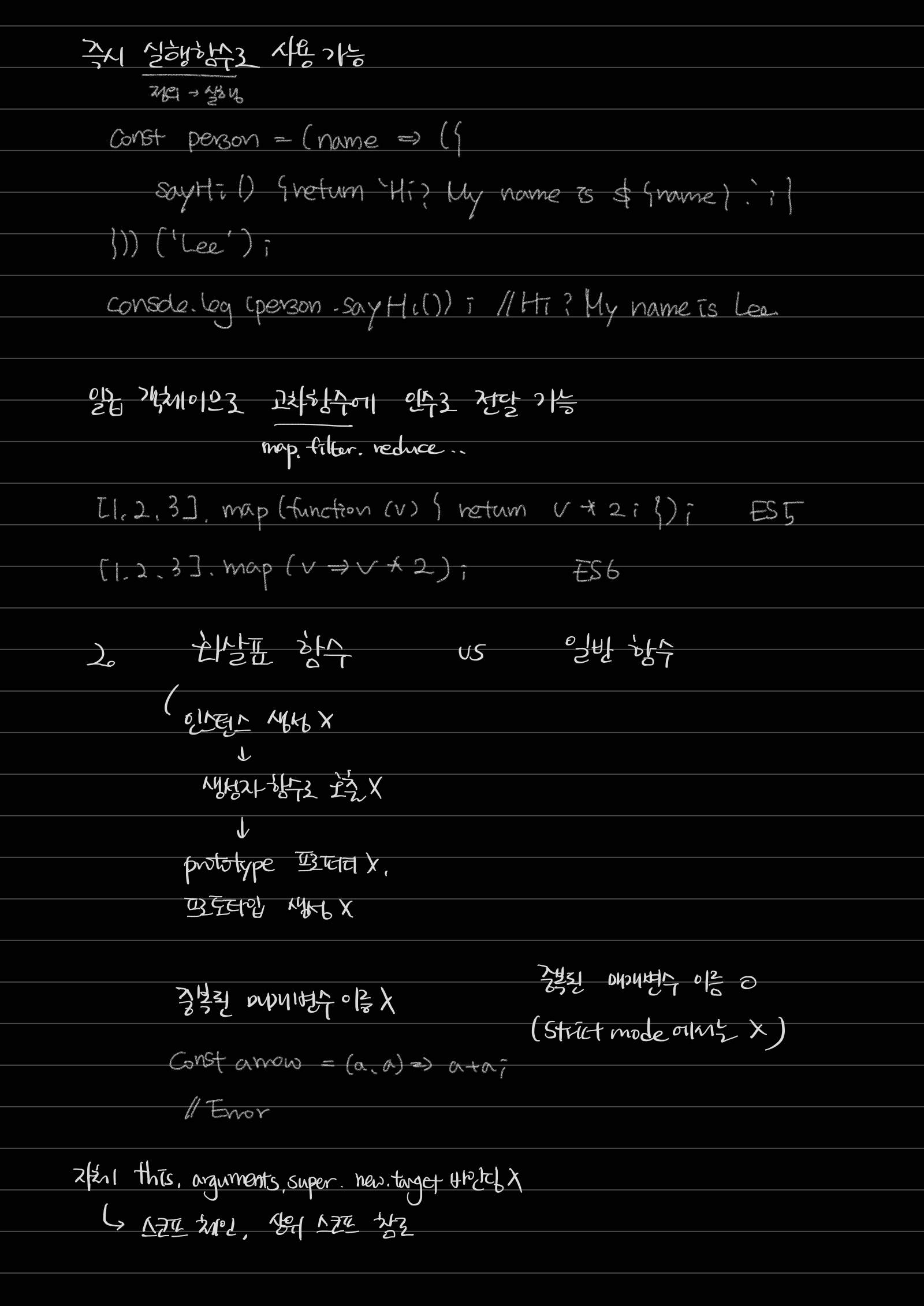 01. 화살표 함수는 인스턴스를 생성할 수 없는 non-constructor -> prototype프로퍼티가 없고 프로토타입 생성x