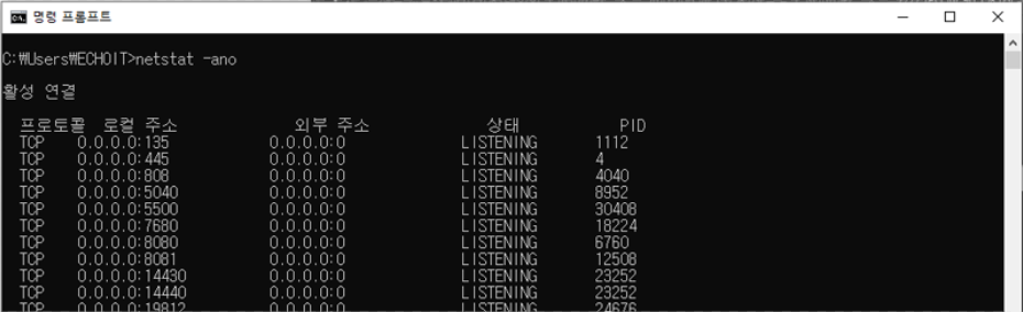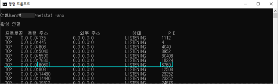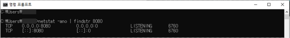 netstat -ano | findstr 8080 //8080에는 내가 찾는 port 번호!