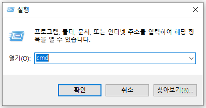 1) window에서 cmd 열기 ( window + R )