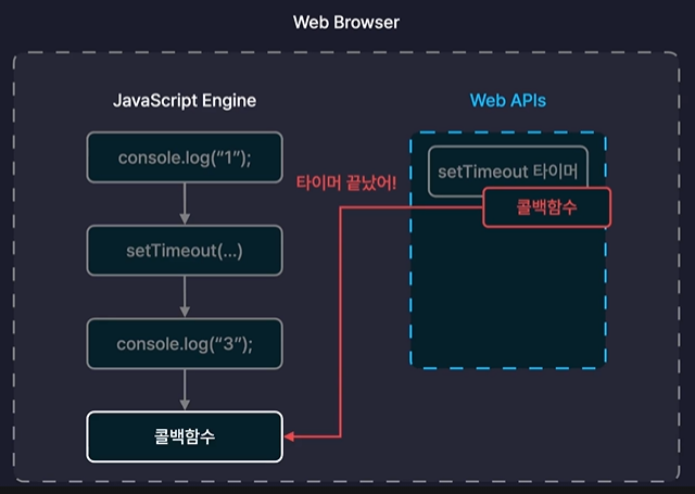 : 비동기 작업은 JS엔진이 아닌 Web APIs에서 실행됨