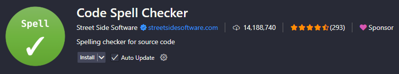 - Code Spell Checker : 사전에 없거나 자주 사용되지 않는 단어 사용시 경고 (prettier에 있는 기능)