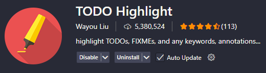 - TODO Highlighter : 주석에 하이라이트처리로 눈에 띄게 (비슷한 종류 많음)