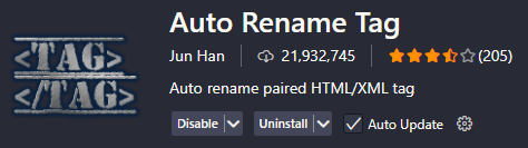 - Auto Rename Tag : html 태그 수정시 시작태그와 종료태그를 자동으로 함께 수정 (prettier에 있는 기능)