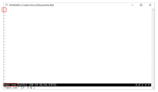 2. vim : txt 파일 만들기 ( 같은 이름의 파일이 있을경우 txt파일 열림 / 없을 경우 새로운 txt파일 생성 )