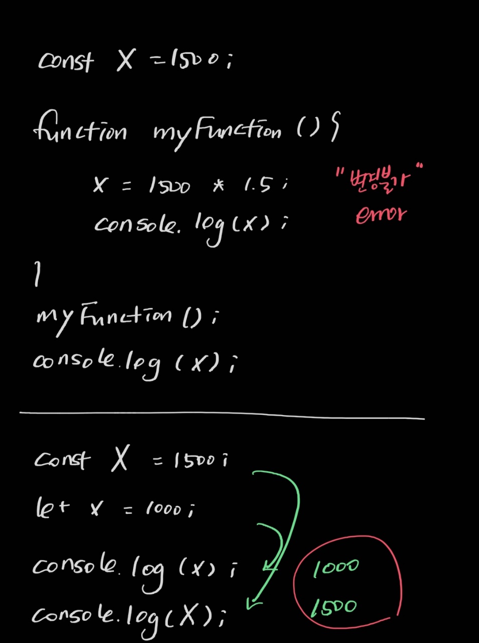 //▽ 상수는 const로 지정, 변경 불가, undefined, null불가 / 이름을 "대문자"와 "_"로