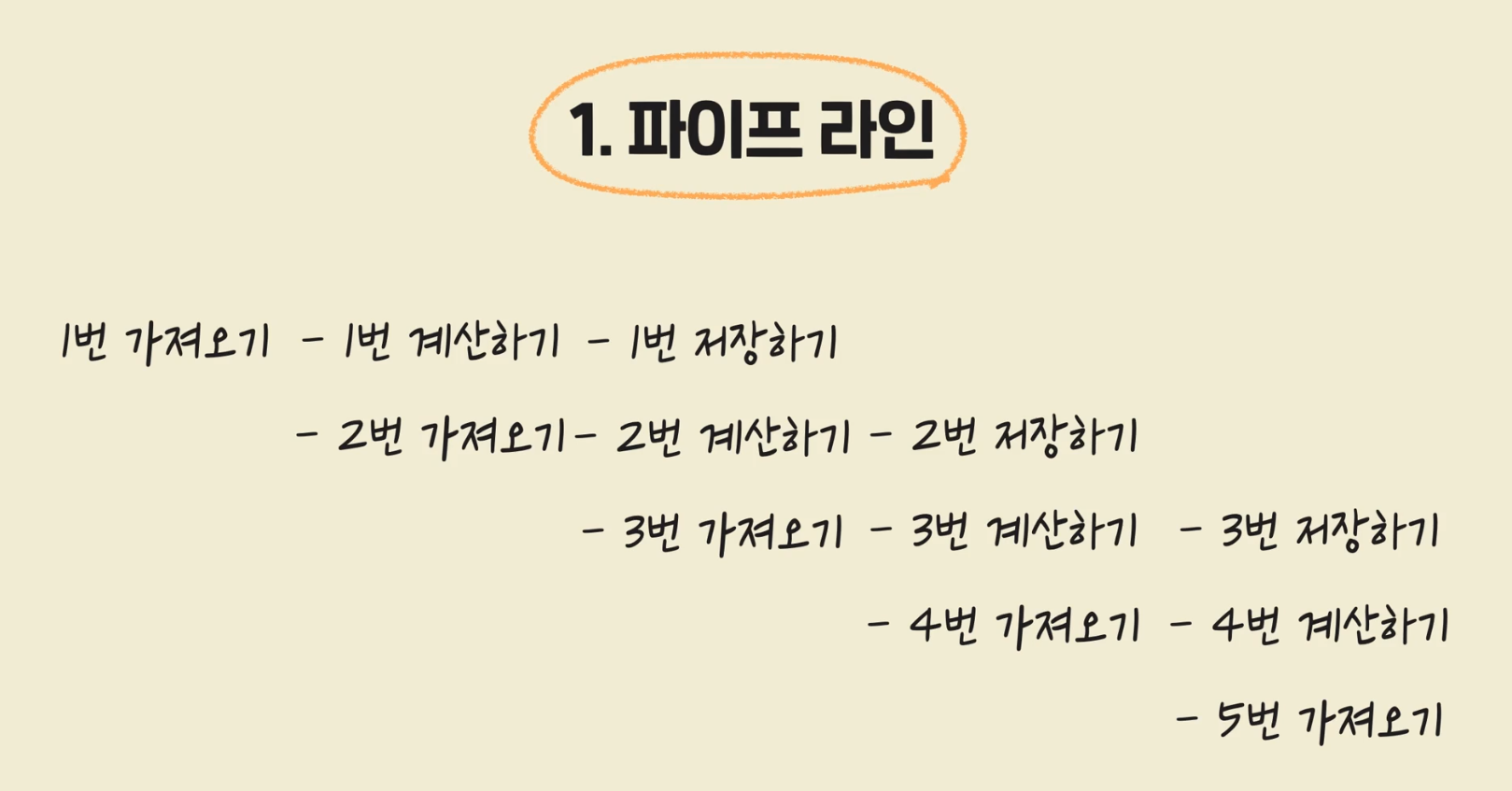 ex) LOAD(불러오기) : 5사이클 , STORE(저장하기) : 3사이클 , ADD(더하기) : 4사이클 -> 평균 4사이클