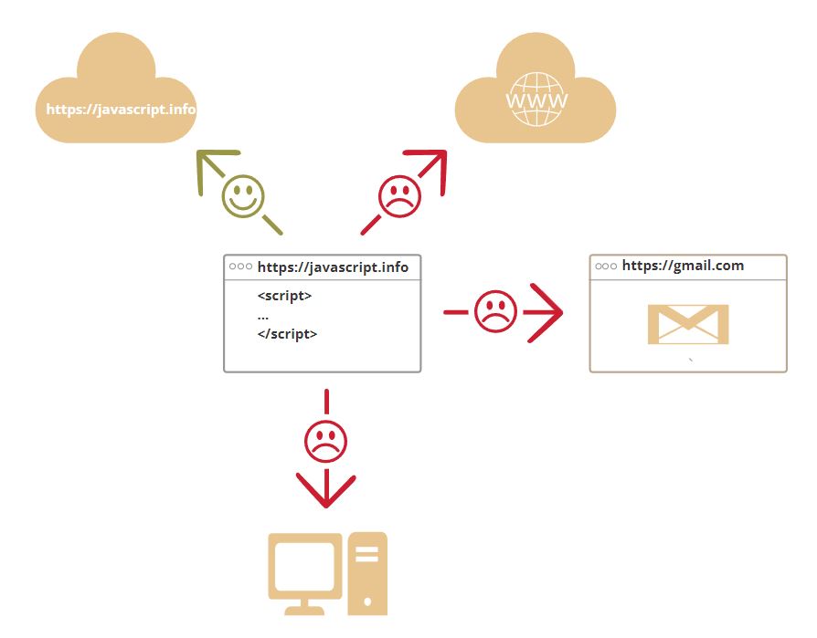 브라우저는 보안을 위해 JS의 기능에 제약을 걸어놓음, 악성 웹페이지가 개인 정보에 접근하거나 사용자의 데이터를 손상시키는 것을 방지하기위해서